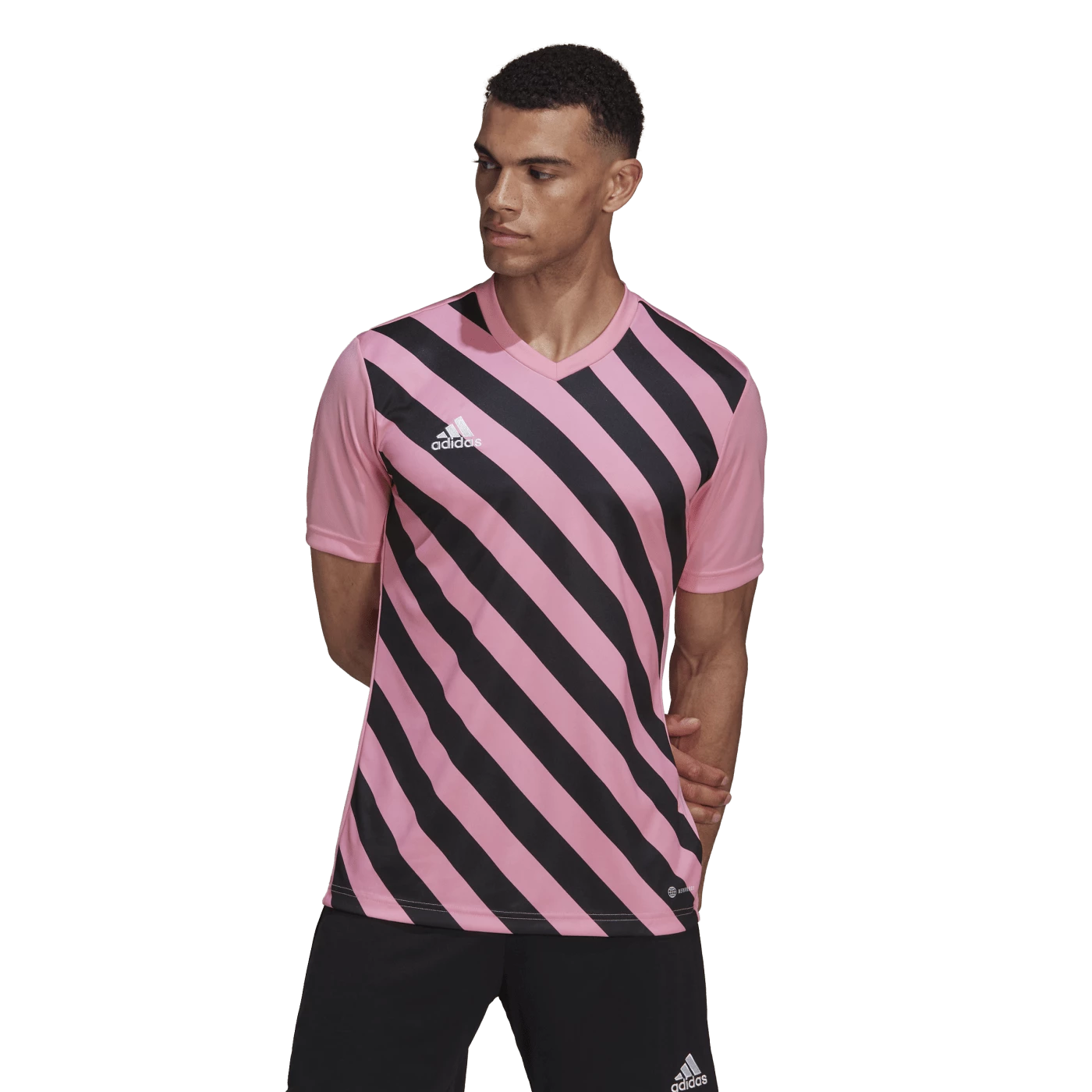 For your team. For your planet. Part of the Entrada 22 range, this adidas jersey puts a new slant on a classic football look. Halfway between vertical stripes and horizontal hoops, its diagonal design will keep your teammates standing out on the field. Moisture-wicking AEROREADY ensures your performance matches your appearance.
