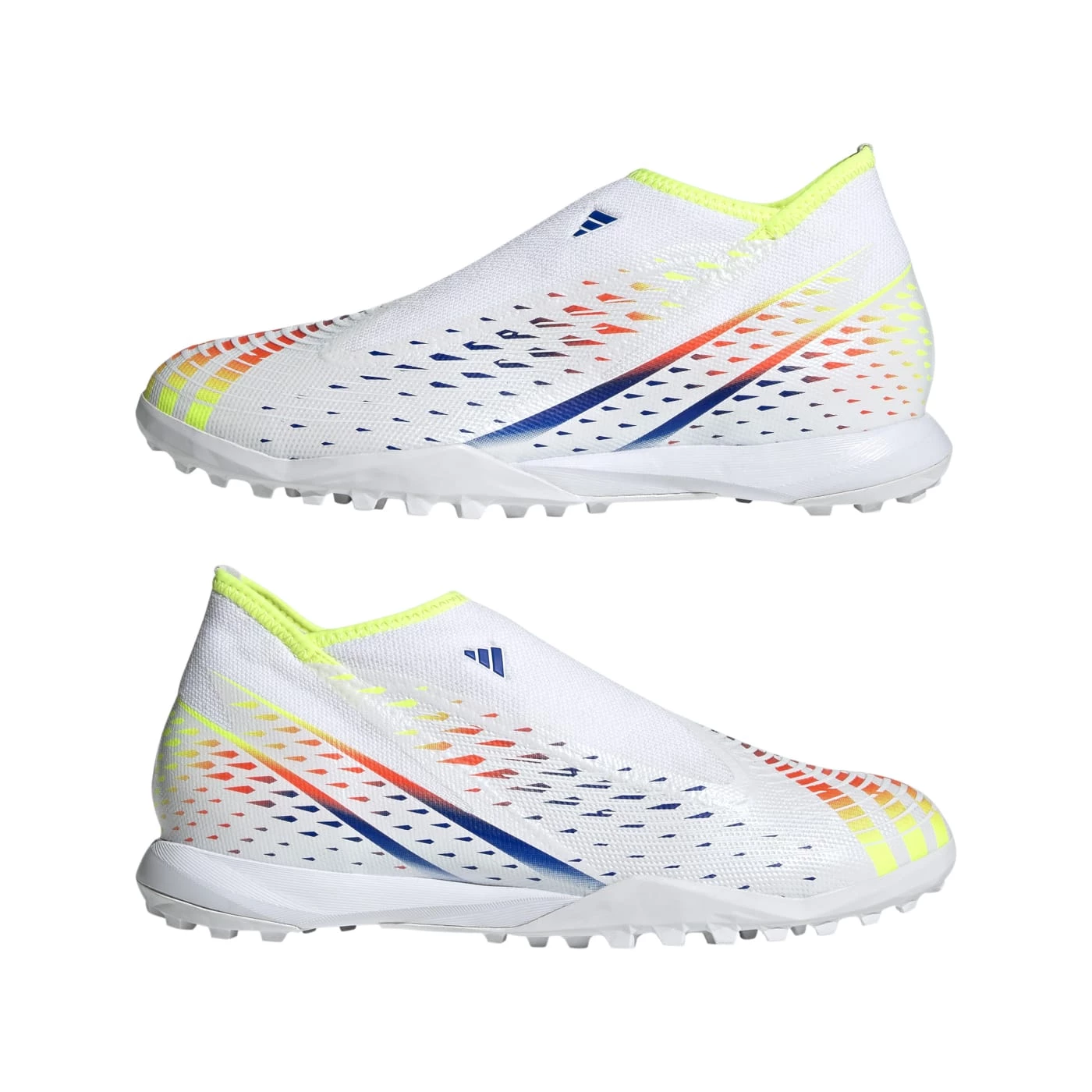 Swerve ordinary to find your edge. Introduce a brand-new side to your game in these adidas Predator turf football boots. Deployed across their laceless coated textile upper, grippy Control Zone print assists you with every touch of the ball. The combination of an adaptive collar and lug rubber outsole keeps you stable and in charge on artificial turf courts.