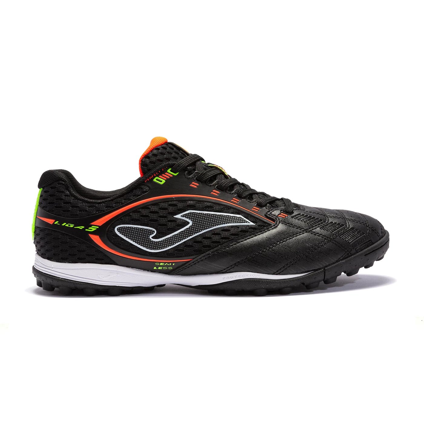 Futsal shoes for adults. This new model of resistant synthetic material has been developed to be off-road. They are designed for soccer players who seek excellence in their shoes. What they call a tough match, she calls a warm-up. The cut is made of high-quality synthetic material and mesh to promote perspiration of sweat. In addition, they have a lighter synthetic heat-sealed with Joma SPORTECH technology, which attaches to the mesh. To make these futsal shoes more breathable, we have added small perforations in the upper with VTS technology. Thus, the ventilation of sweat and comfort will be optimal. They include reinforcement in the toe box with PROTECTION technology, so that they absorb the impact of the ball and allow more precision and power in the shot. The insole is made of thermoformed EVA and the insole is made of 2 mm natural EVA. The midsole is made of high-quality and durable phylon (shore 55) with FLEXO flex grooves on the entire surface. The sole is made of DURABILITY rubber of excellent quality and resistance to DIN-70 abrasion. It also incorporates FLEXO technology, which helps the shoes to be flexible and the tread to be natural.