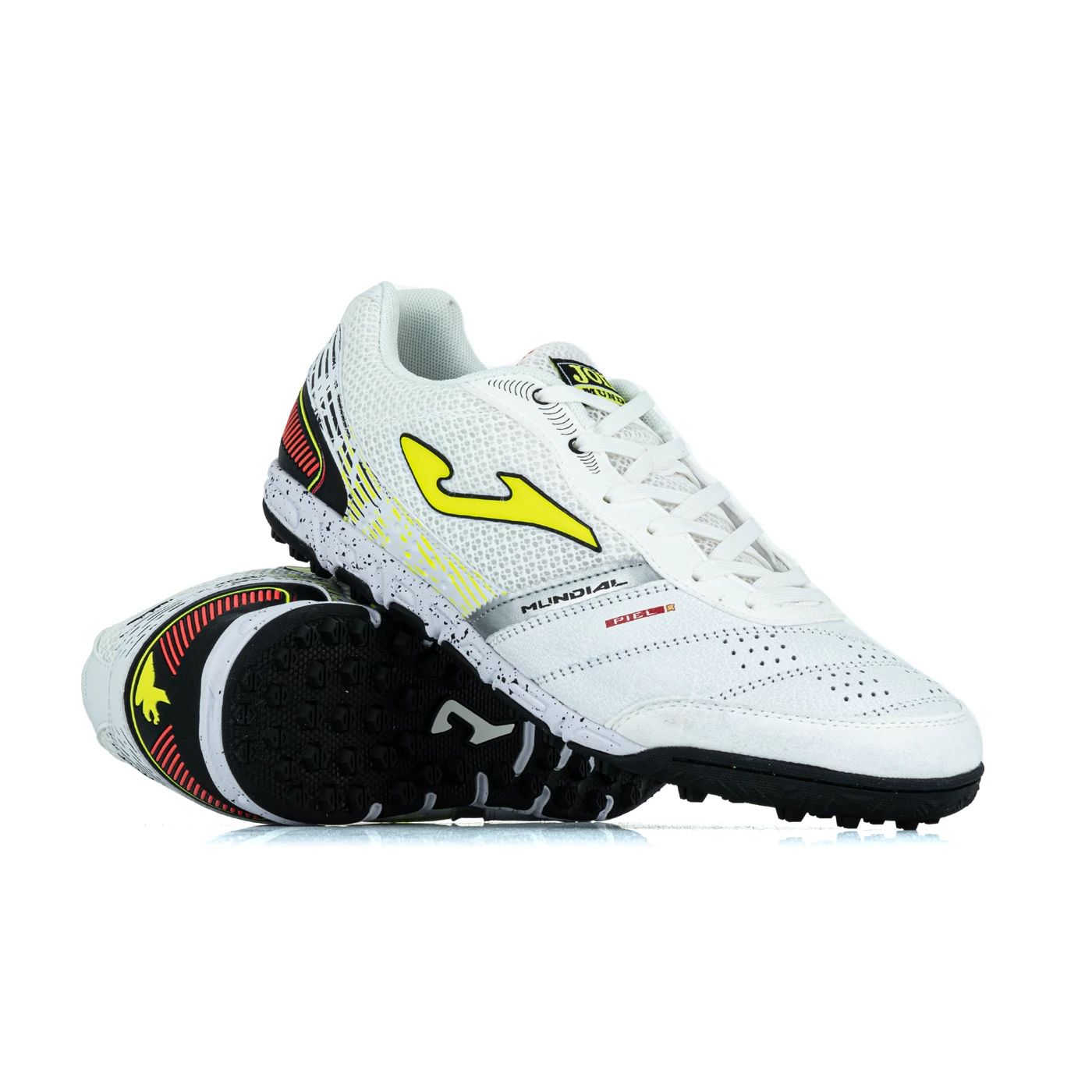 Botas de fútbol para adultos. This classic court model is indicated for jugar in synthetic surfaces and carpets. Destaca por el use de piel en el court that guarantees a major contact with el balón y mayor resistencia. Están pensadas para aportar altas prestaciones. El corte está fabricado en piel muy flexible de primera calidad. The ventaja de la piel es que es resistant, flexible and transpirable por naturaleza. Además, including part en mesh, which increases aún más the transpirabilidad de las zapatillas. Para hacer unas botas todavÃa más transpirables, hemos añadido pequeñas perforaciones en upper with VTS technology. AsÃ, the ventilation of the sweat and the comfort serán óptimos. Including refuerzo of microfibre in the tip with the PROTECTION technology, of the way that absorbs the impact of the balón and permite more precision and power in the shot. La plantilla es de EVA thermoconformada que amortigua y la palmilla es de material texon. The mediasuela es de phylon de alta calidad y durabilidad with ranuras de flexión en toda the surface. The application of the FLEXO technology ayuda a que las zapatillas sean flexibles ya que la pisada sea natural. Its construction is made of caucho de muy buena calidad gracias and the DURABILITY technology. Proporciona alta resistencia to desgaste pro abrasión.