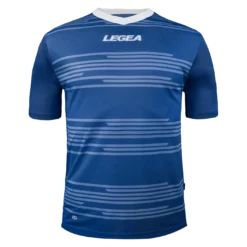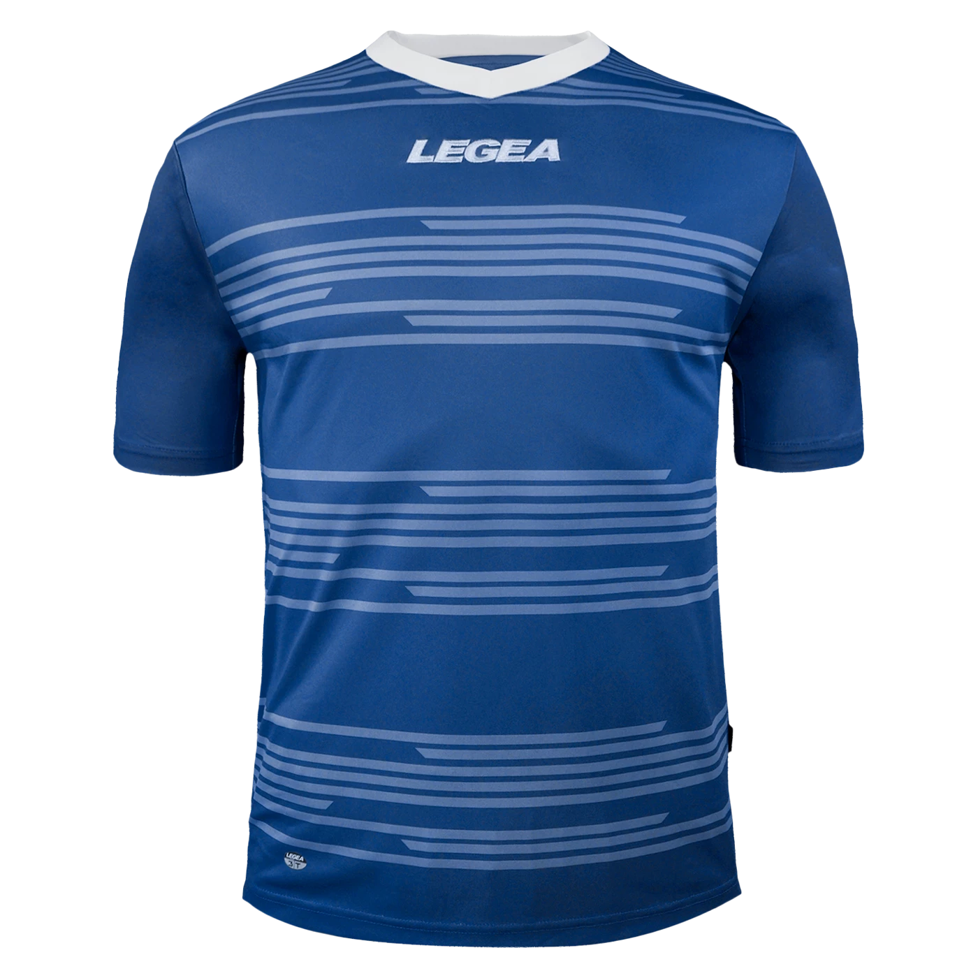 Legea jersey model Ankara light blue with orizontal lines and V neck.