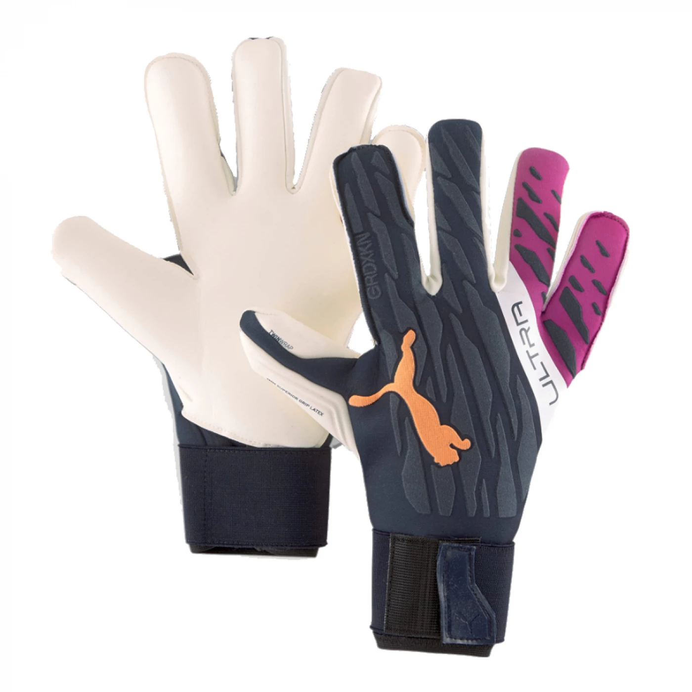 We have listened to your requests and have satisfied you. Our ULTRA line is designed to meet and exceed any modern goalkeeper’s need. In terms of breathability, fit and grip, these gloves are a concentrate of technology that guarantees the best performance currently available on the market. We used the exclusive GRDXKN print to offer the lightest, fastest and most flexible gloves around. Our ULTRA Grip 1 Hybrid Pro features a 4mm latex palm, made from 90% renewable raw materials to offer exceptional grip in both wet and dry conditions and the lightweight body weight material plays to the benefit of comfort and breathability. Features synonymous with reliable performance.- The mixed Gunn and negative palm cut provides greater grip and a better fit- The exclusive GRDKXN PUMA print on the grip surface allows perfect control of the ball when parrying- The Twin-wrap insert on the thumb and latex gussets increase the gripping surface in contact with the ball even when the fingers are twisted- Body in lightweight material for maximum comfort and breathability- PUMA Cat logo on the back- Outside: 55% Polyester, 44% Latex, 1% Polyurethane